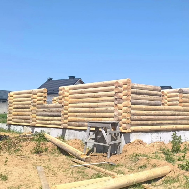 Под ключ — значит вы получаете полностью готовый сруб с крышей и основанием. Мы берем на себя всё: выбор бревен в лесхозе, подвоз на участок, рубку на фундаменте, устройство кровли и самого фундамента. Цена рубки — 450 руб./м³. Работают несколько бригад — сроки соблюдаем. Директор участвует в выборе материала и лично контролирует качество.